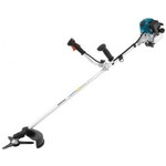 оснащен триммерной головкой с леской и ножом, защитным кожухом, эргономичной рукояткой и ременной оснасткой на два плеча. Оптимизированная длина штанги и редуктор с повышенным крутящим моментом облегчают работу и позволяют режущему оборудованию работать параллельно земле.